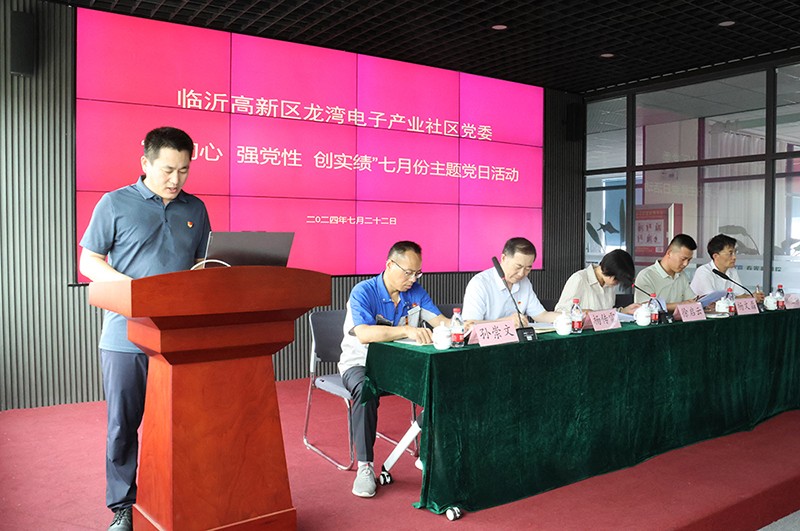 7月22日,临沂高新区龙湾电子产业社区党委在春光科技集团会议室组织开展了以“守初心、强党性、创实绩”为主题的主题党日活动。此次活动旨在深入学习贯彻习近平新时代中国特色社会主义思想,提升党员队伍整体素质,强化党员的纪律规矩意识,激励全体党员在新时代背景下勇于担当、积极作为。